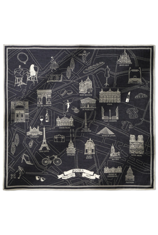 Foulard Ex-libris Paris x aLORS -une collaboration d’exception(ダークネイビーx アイボリー) 140x140cm