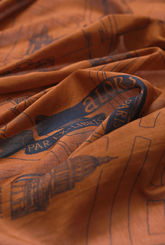 Foulard Ex-libris Paris x aLORS -une collaboration d’exception (キャメルx ネイビー) 140x140cm
