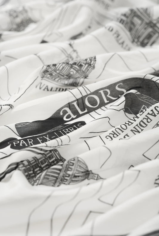 Foulard Ex-libris Paris x aLORS -une collaboration d’exception (ホワイトxブラック) 140x140cm