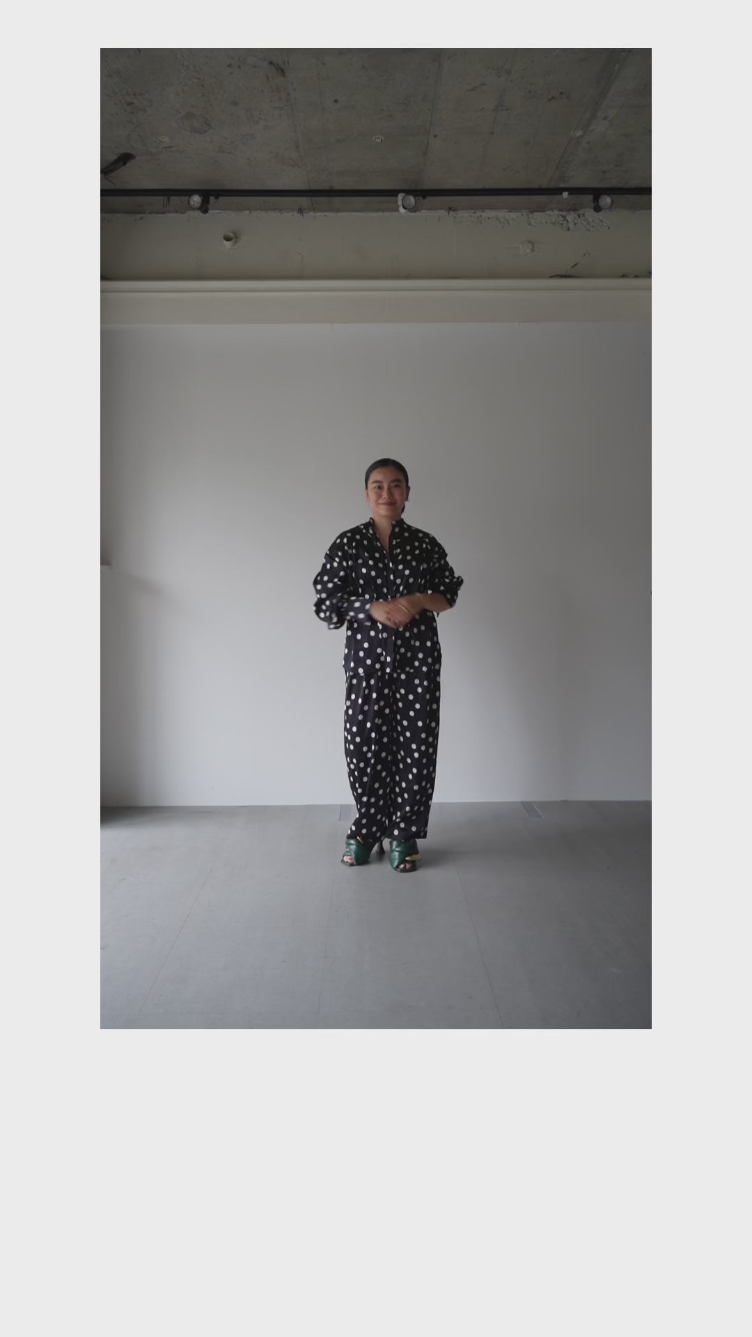 aLORSThe original dot pattern fabric is made from Italian materials that are characterized by moderate elasticity. The smooth luster unique to rayon (viscose) is eye-catching. The dots are hazy and randomly arranged to express movement and three-dimensionality. The back is silky and smooth to the touch.