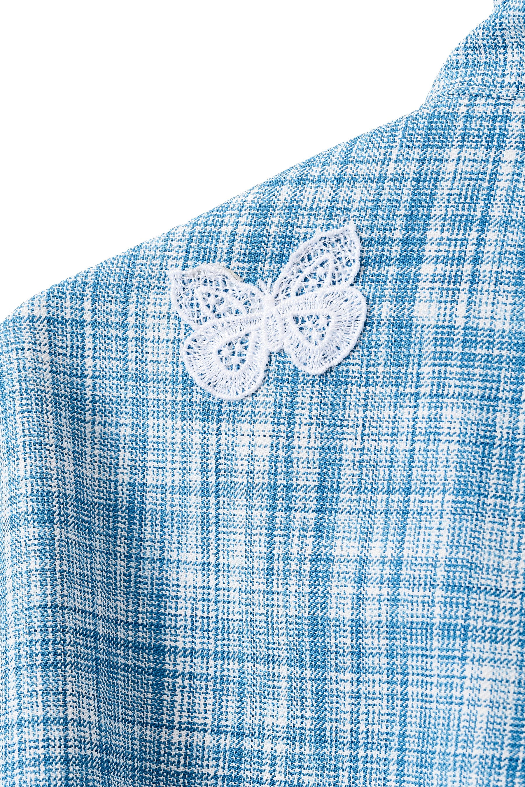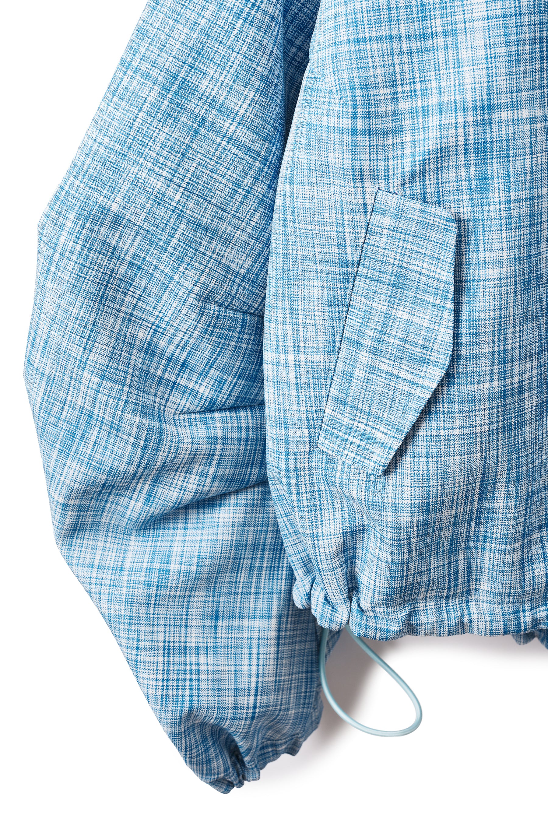 生地には、軽やかなイタリア産のブルーチェック素材を使用。