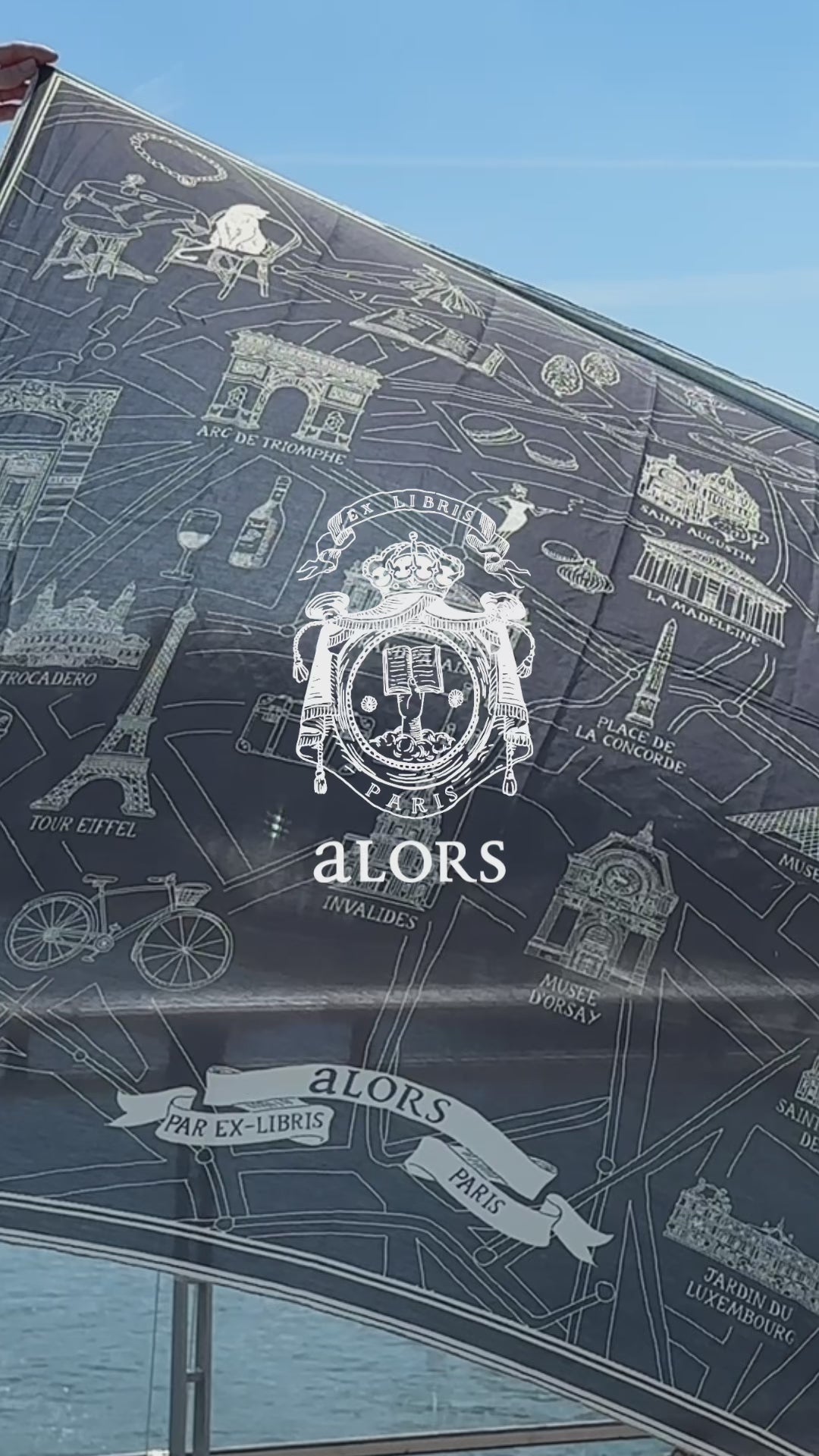 Foulard Ex-libris Paris x aLORS -une collaboration d’exception(ダークネイビーx アイボリー) 140x140cm