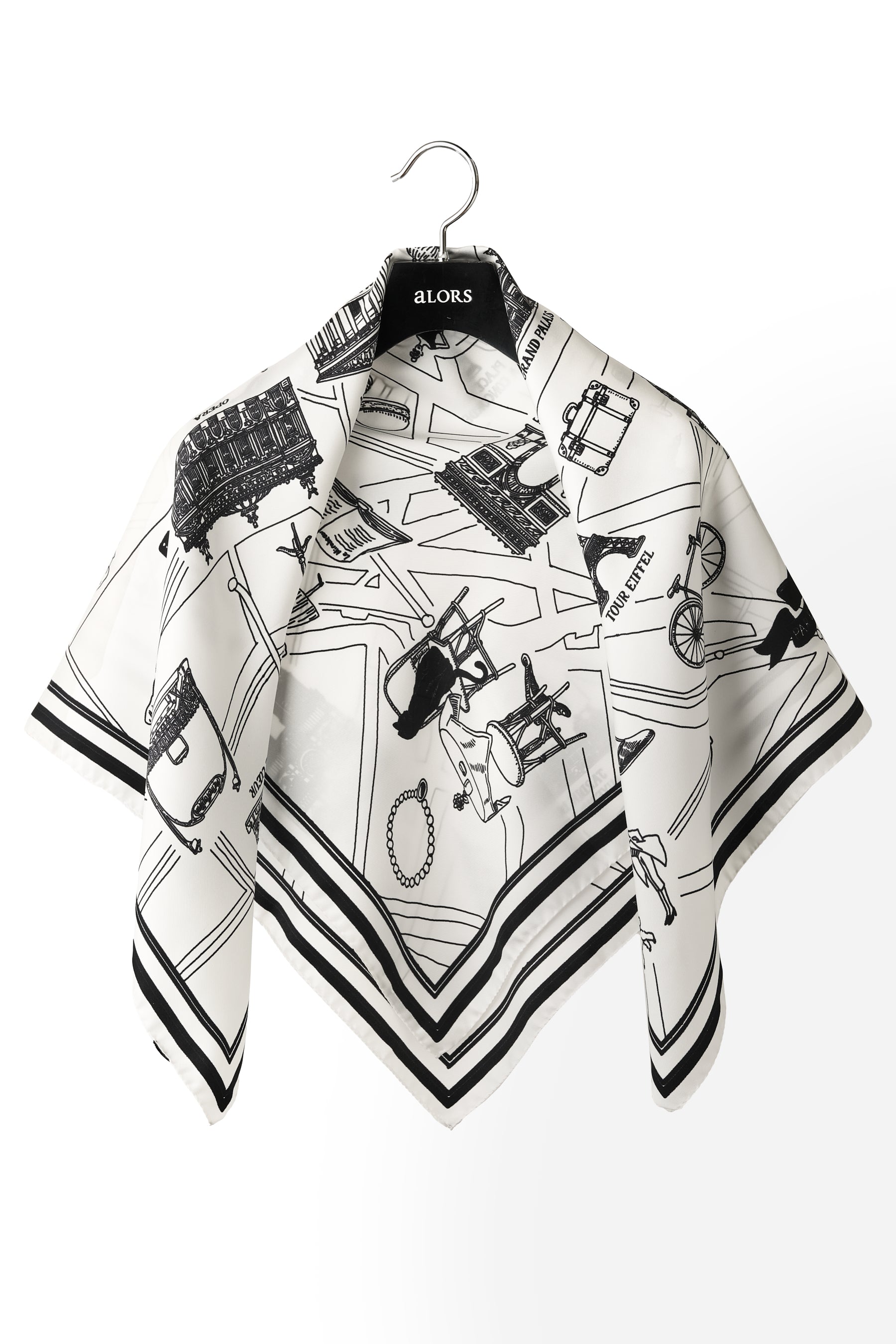 Foulard Ex-libris Paris x aLORS-une collaboration d’exception(ホワイトxブラック)90x90cm