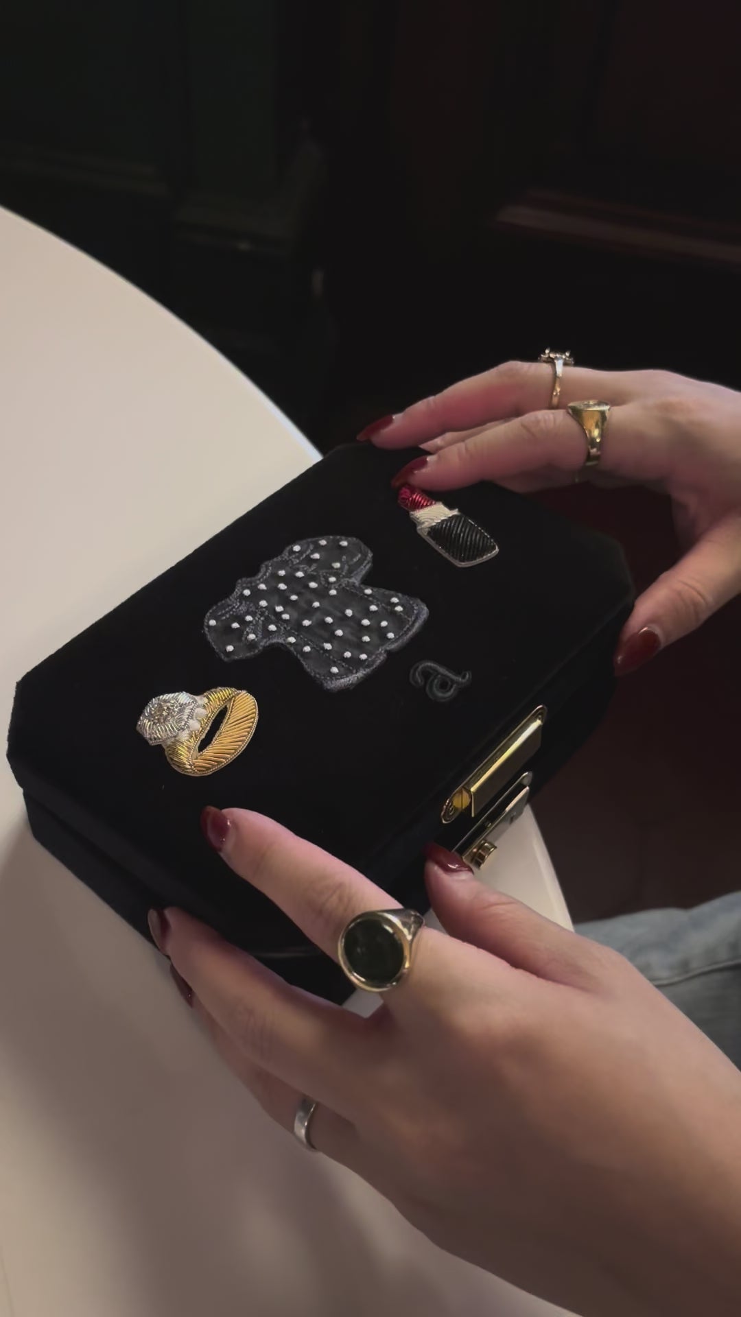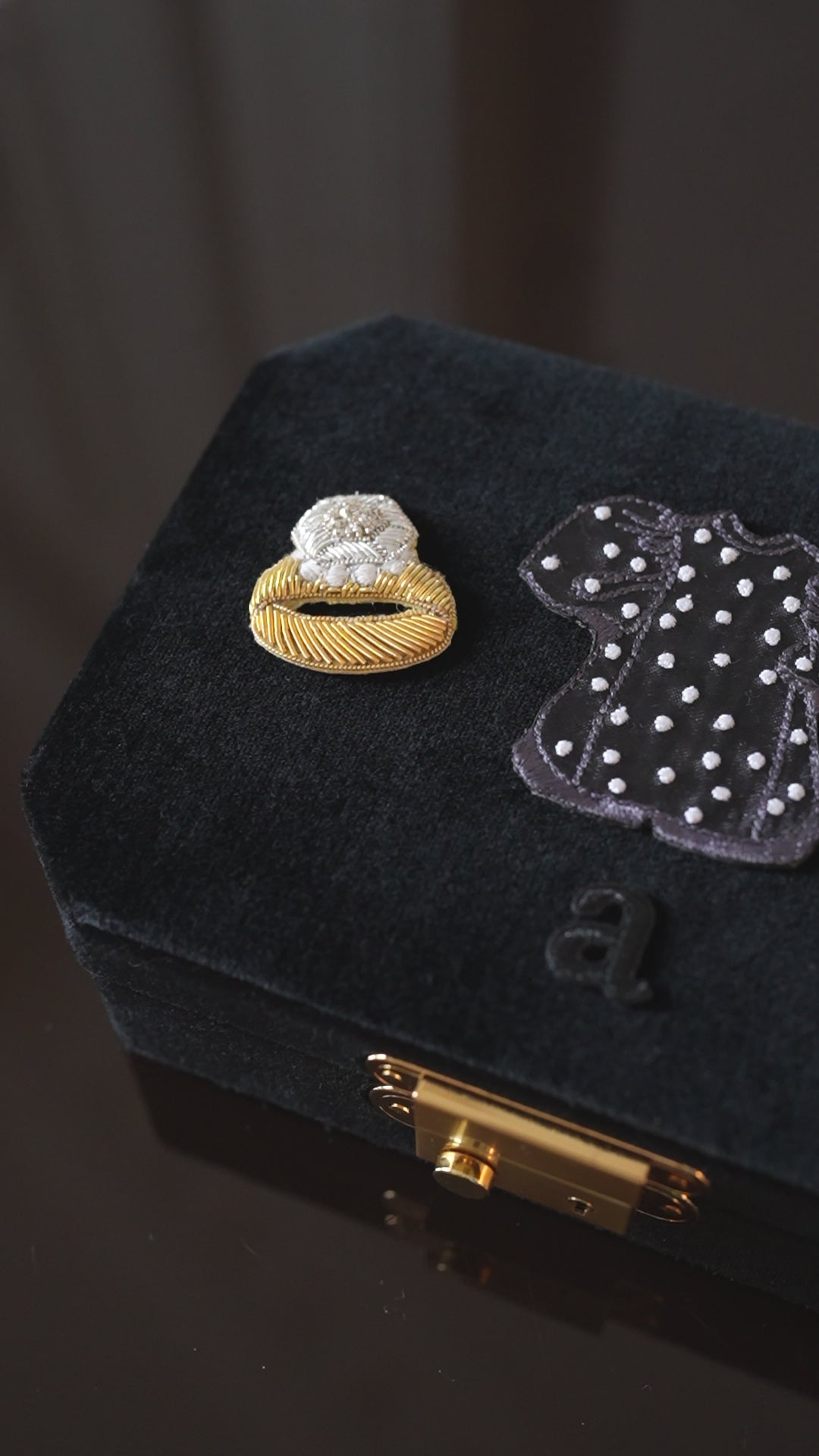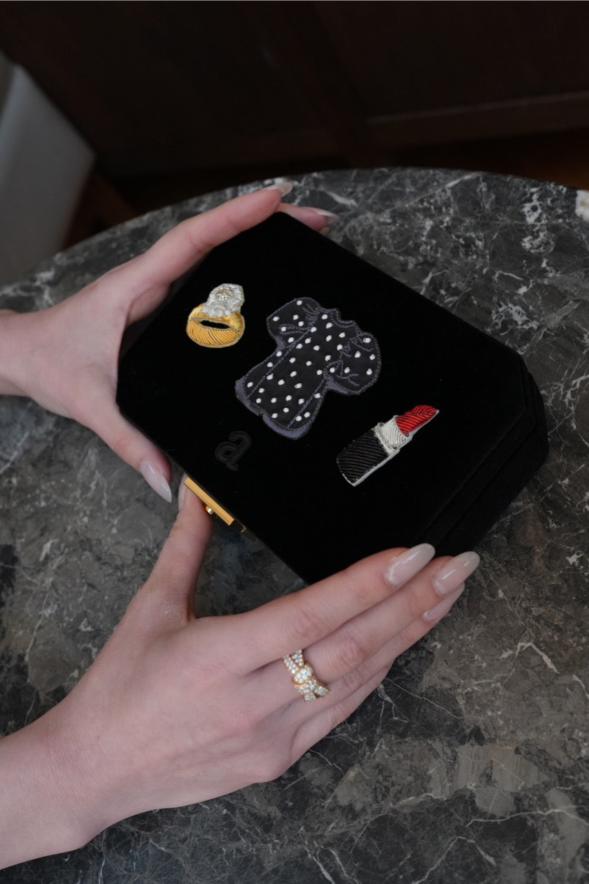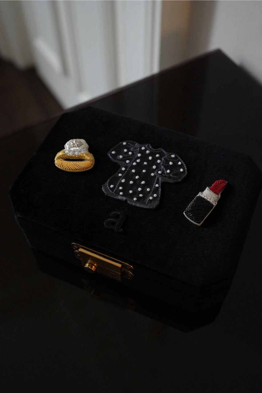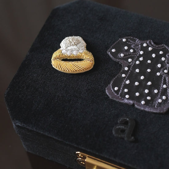 さらにリュクスな手刺繍のリング&ルージュワッペンを加えてさらに華やかさと手仕事がもたらす、より豊かな表情をプラスしました。