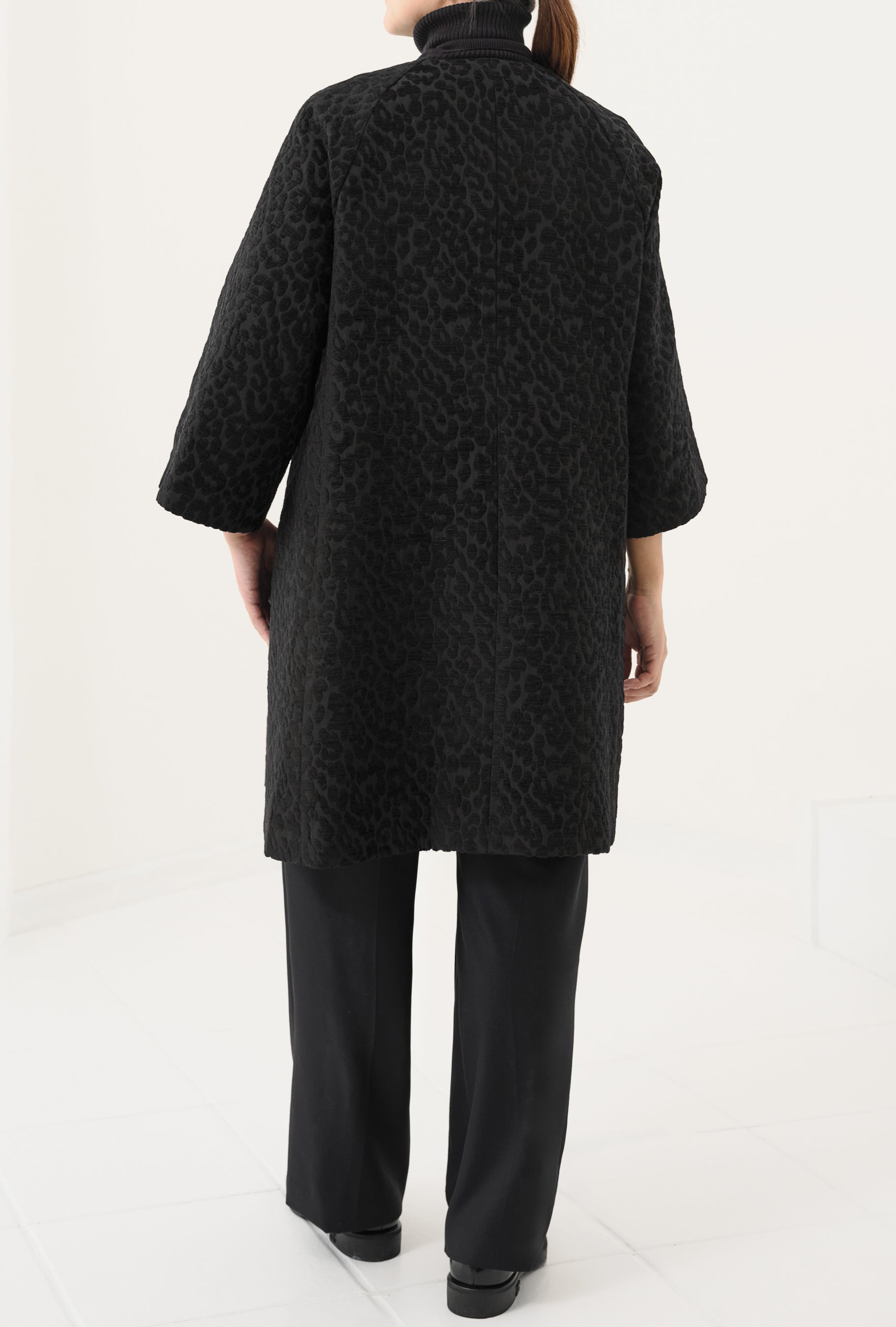 イタリアで開発したブランドオリジナルのレオパード柄ジャガードを用いた【アマーリ】シリーズに、新作のコートが加わりました。