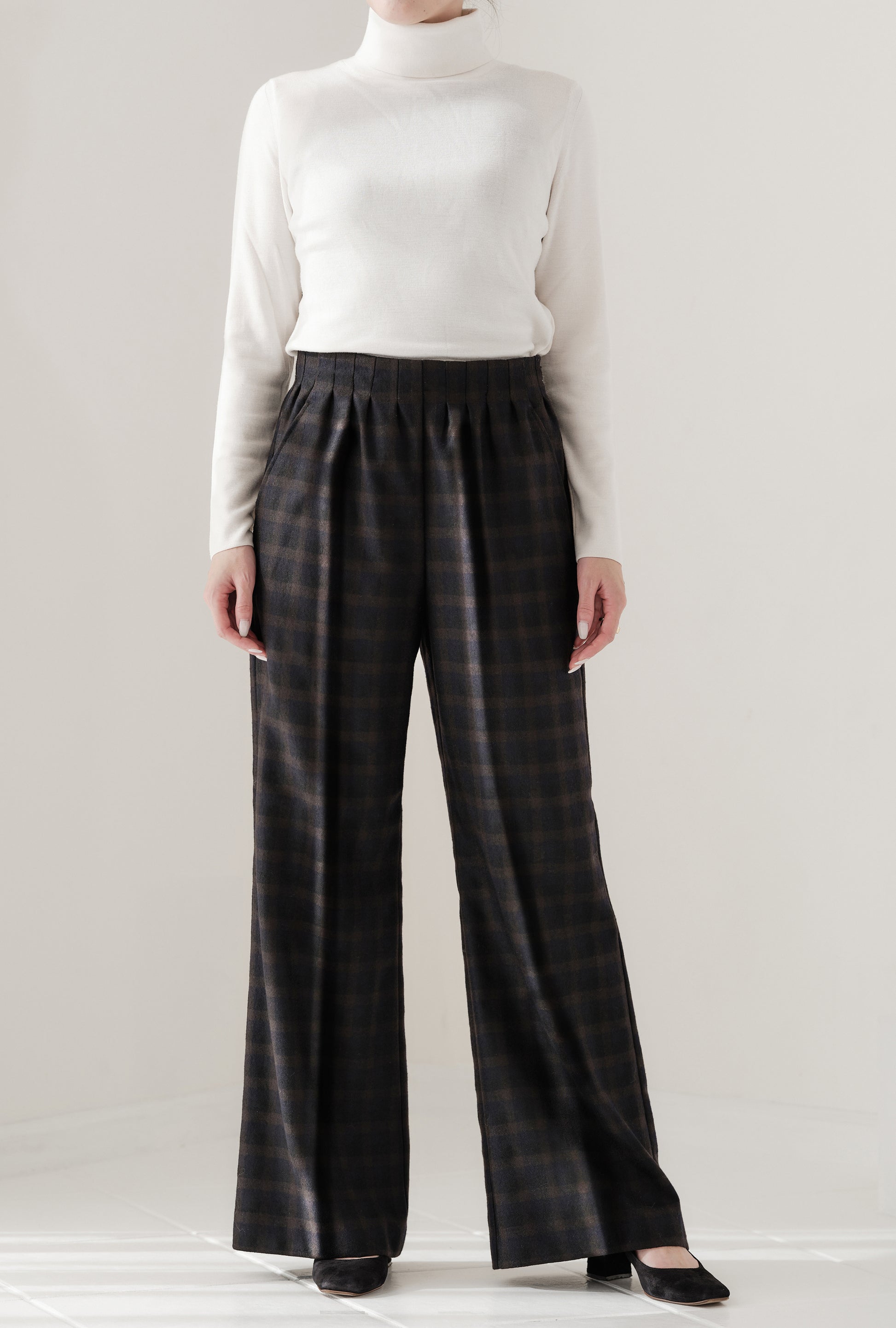 膝下から裾にかけて広がるフレア型で、ラグジュアリーなリラックス感と柔らかな印象を持たせつつも、センタープレスを入れることでタウンユースシルエットに仕上げました。