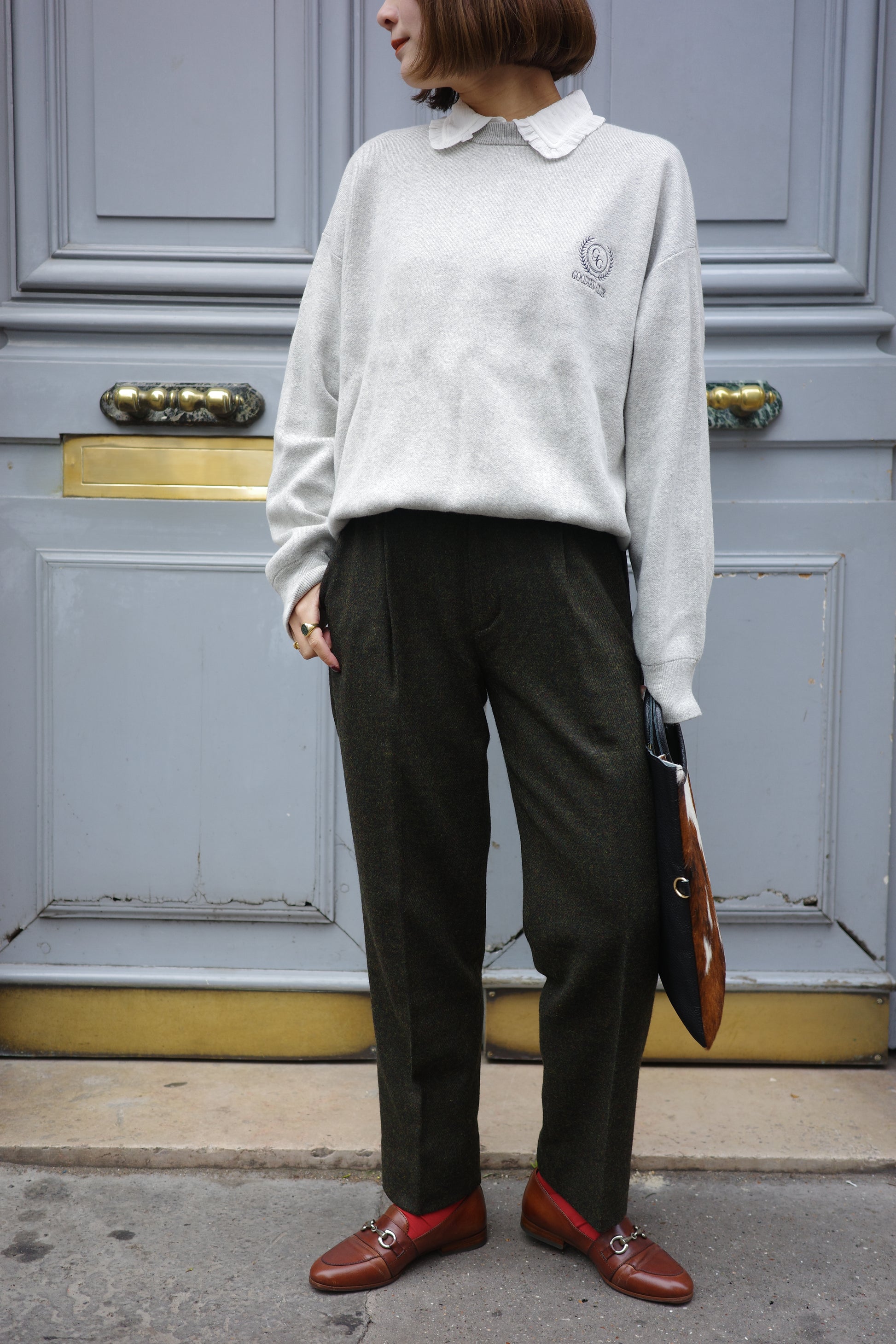 Pantalon fuselé en tweed MOON "Bonnie" カーキ