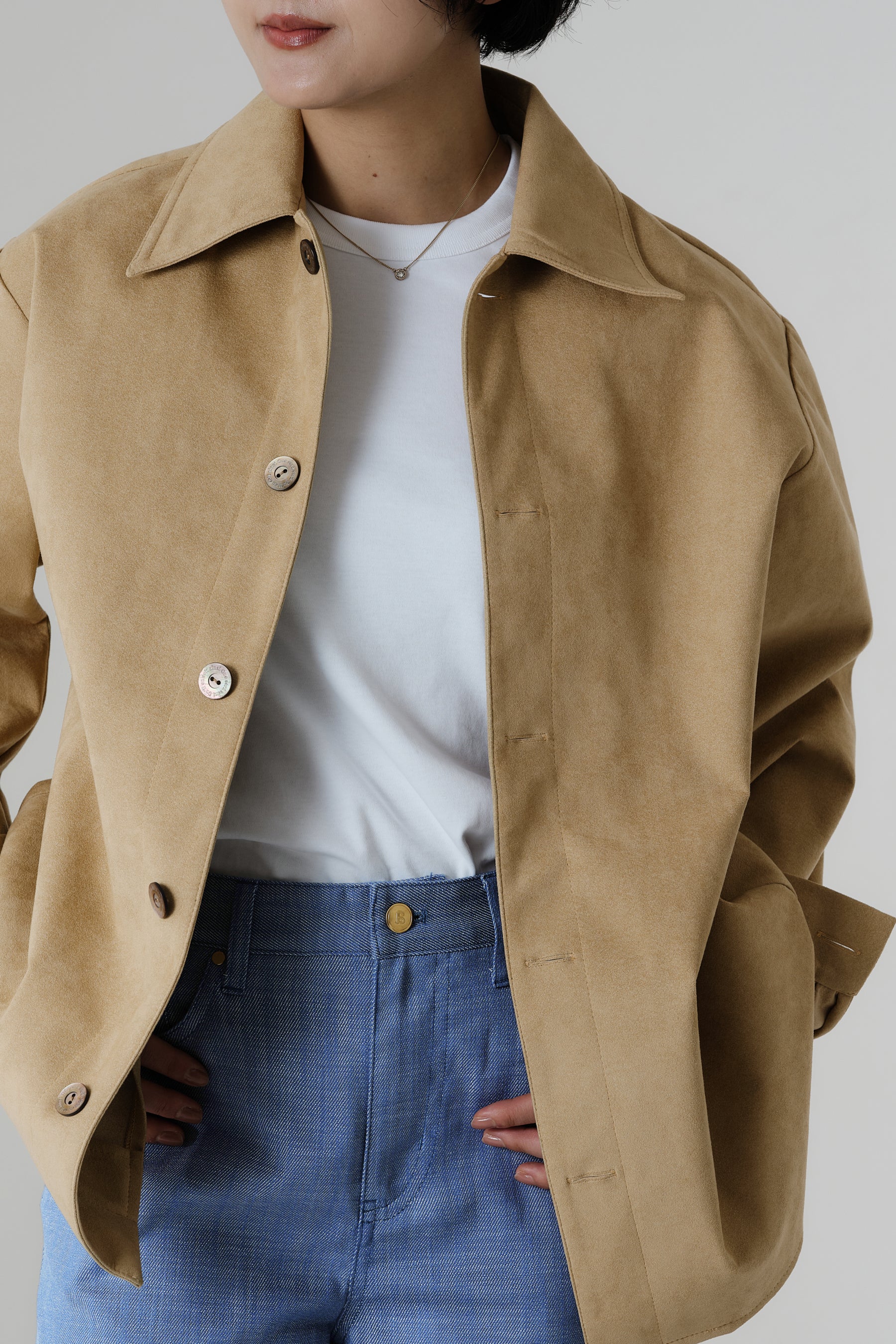 驚くほど軽やかな生地で仕立てたジャケット。手に取った瞬間に感じるその軽さは、持ち運びにも優れ、旅先や日常のさまざまなシーンに寄り添います。